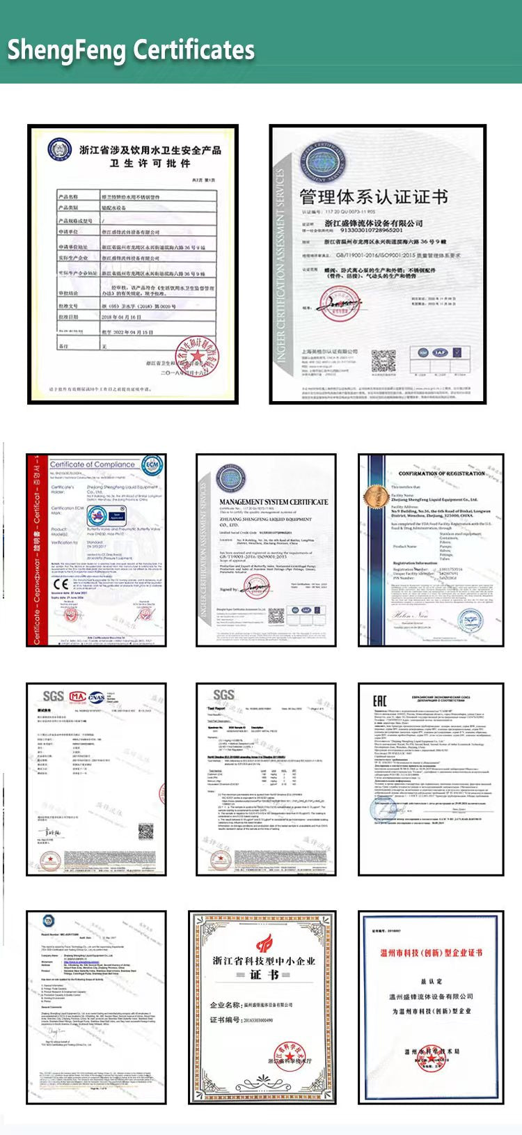 ShengFeng have ISO9001, CE-PED Certifications, TUV Factory Report and SGS FDA & Rohs Report and etc., you can see in ShengFeng Certifications