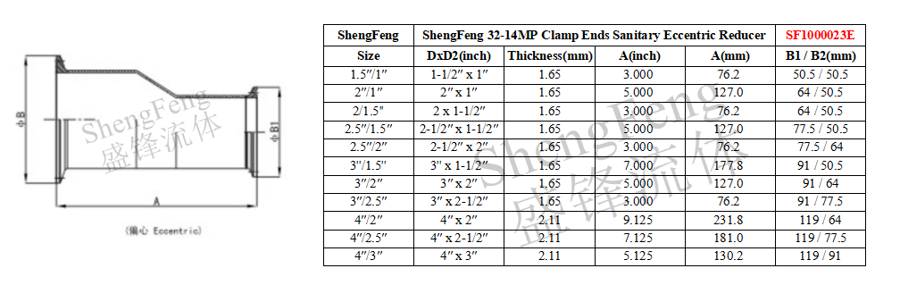 ShengFeng 32-14MP Clamp Ends Sanitary Eccentric Reducer