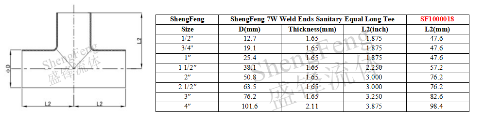 ShengFeng 7W Weld Ends Sanitary Equal Long Tee